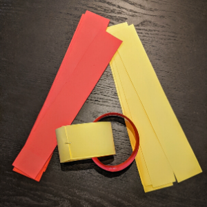 STEP 1. If you are using white paper, go ahead and color one or two sheets yellow and one or two sheets red. Next, use your scissors to cut strips out of the yellow and red paper. You can cut down the short side of the paper for smaller links, or down the long side for larger links.