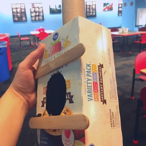 A small cardboard box, like the kind that instant oatmeal packs come in